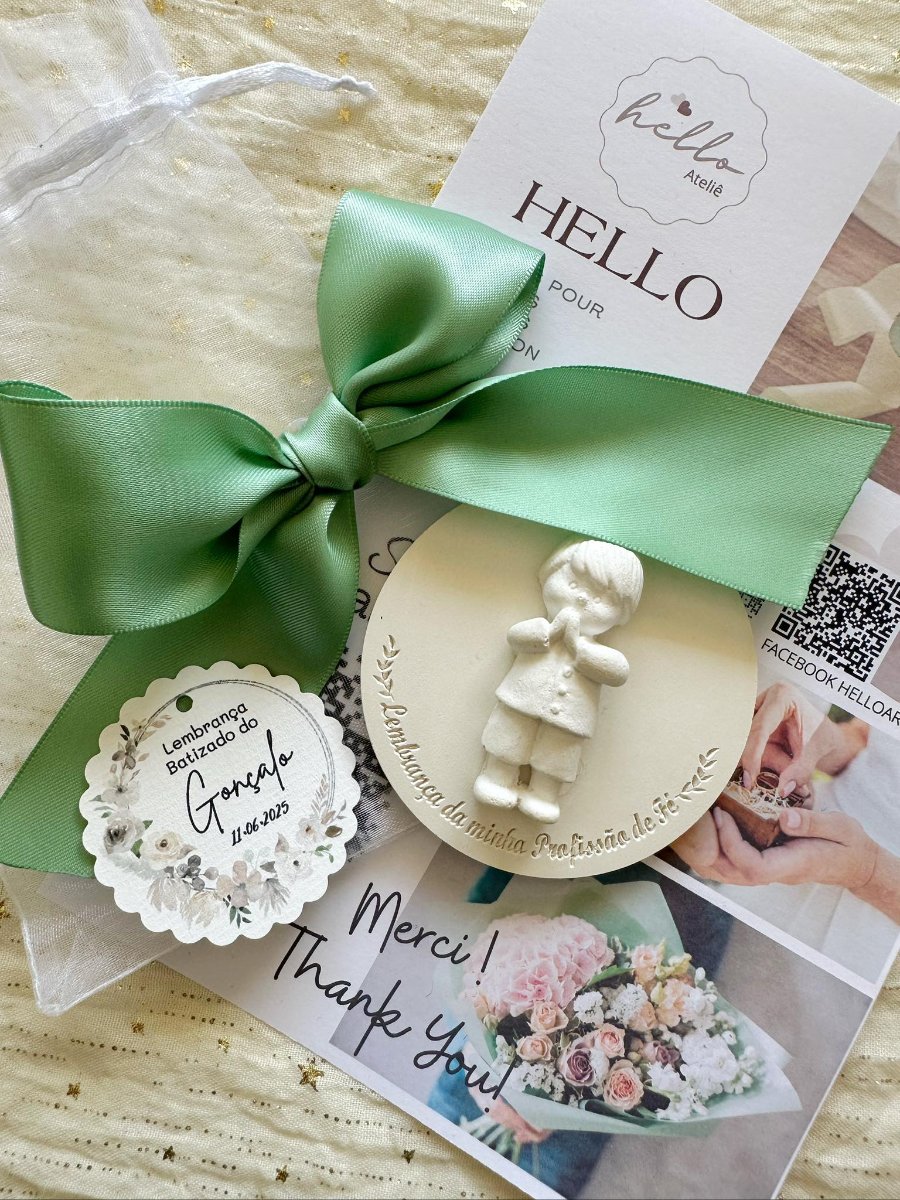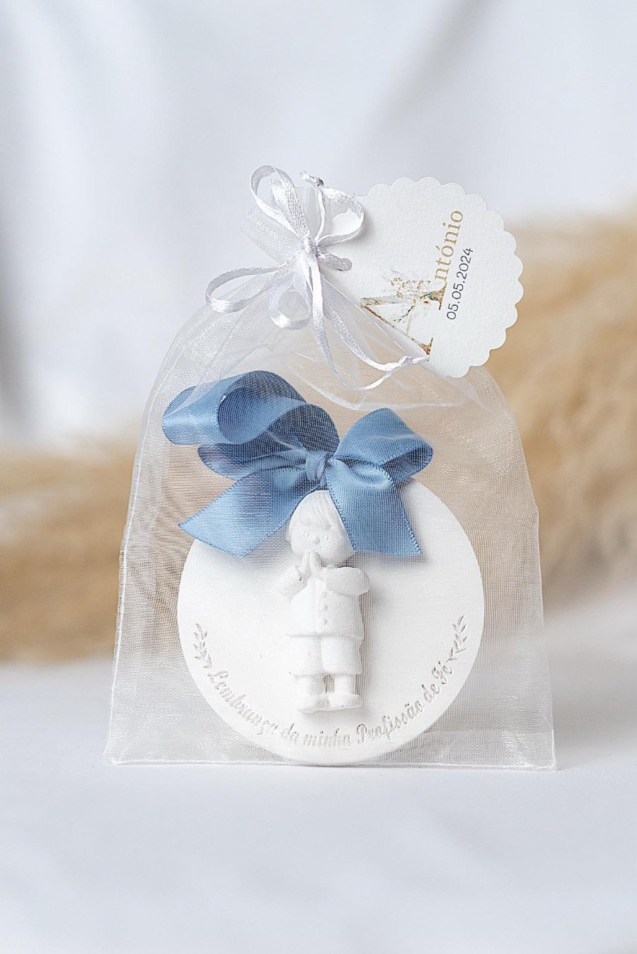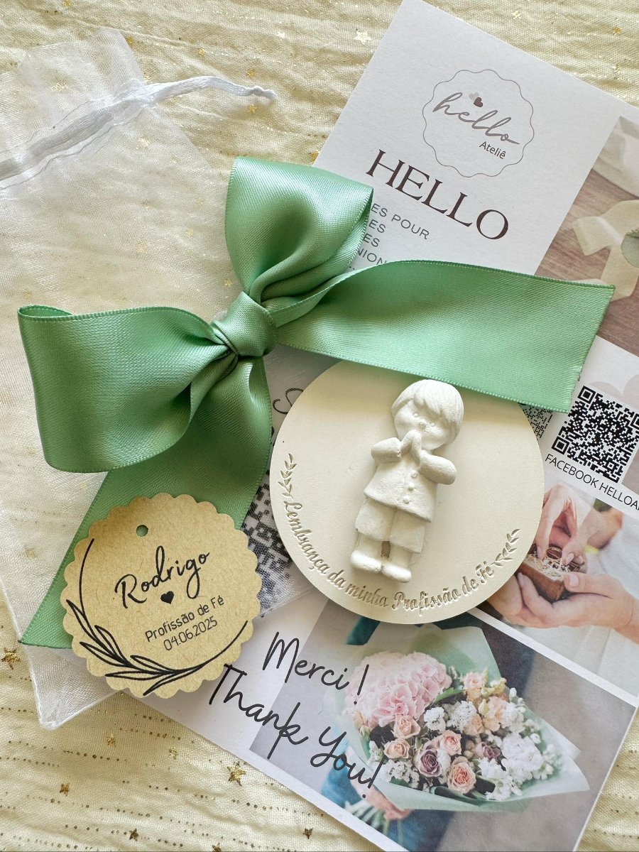 Material: Gesso Tamanho Medalha: 7,5×0,5cm Tamanho Saco: 10x15cm Cheiro: Talco